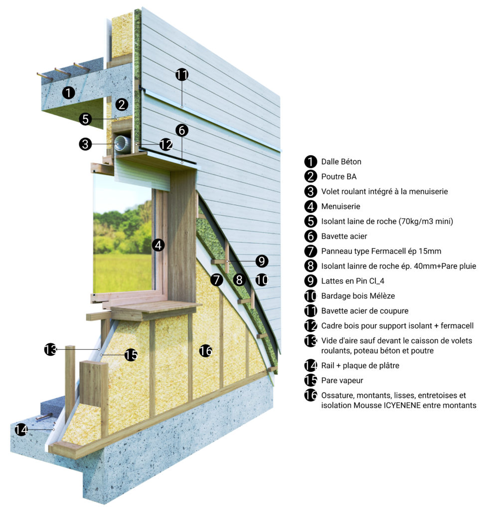 – L’enveloppe structurel avec des façades bois à ossature bois