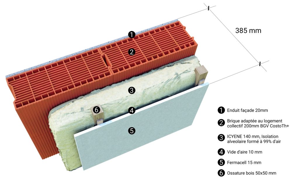 L’ensemble « brique-laine de bois-Fermacell » forme un complexe isolant performant qui cloisonne l’air tout en laissant respirer l’habitat.